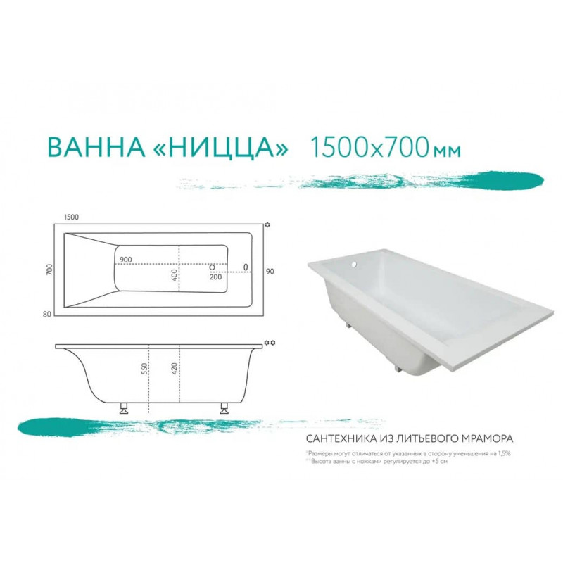 Ванна из литьевого мрамора Marmo Bagno Ницца 150х70 MB-N150-70