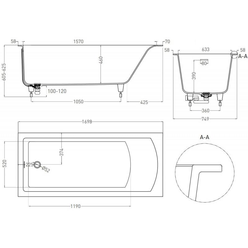 | Расположение ванны: | Встраиваемая, Приставная |
