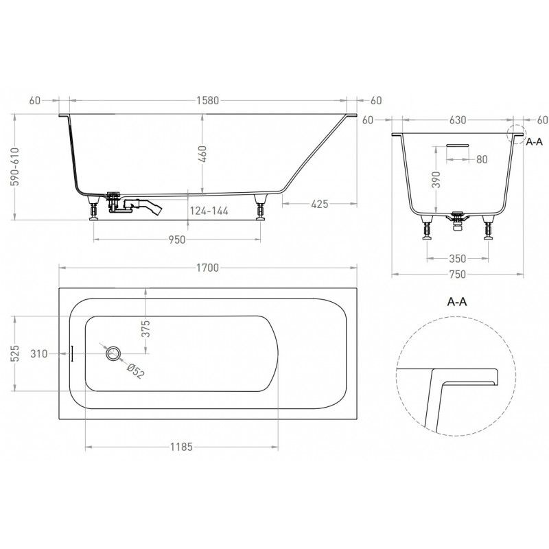 Ванна из литьевого мрамора Salini Orlanda Kit 102127M 170х75 белый матовый.