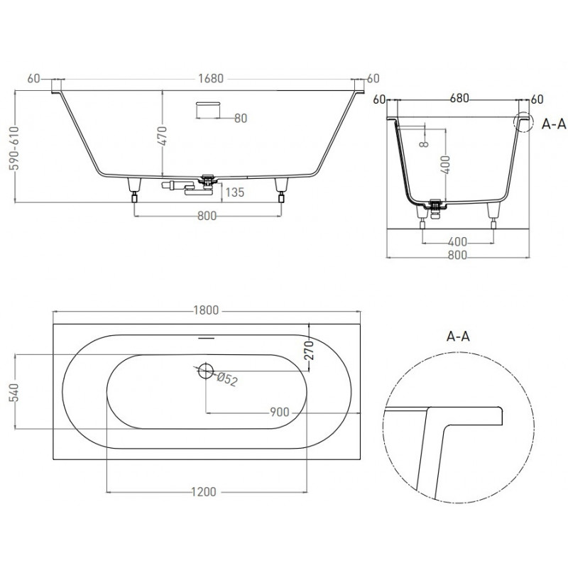 | Расположение ванны: | Встраиваемая, Приставная |