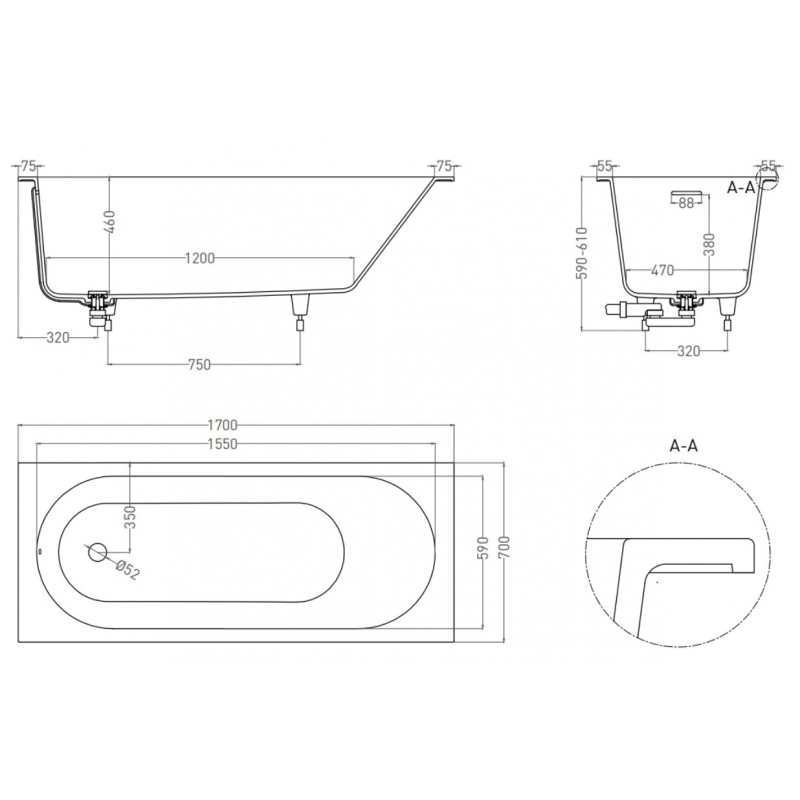 Ванна из литьевого мрамора Salini Ornella Kit 102413G 170х70 белый глянцевый.