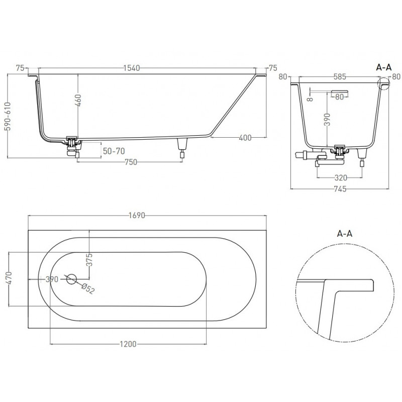 | Расположение ванны: | Встраиваемая, Приставная |
