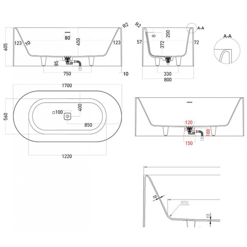 Комплектация: интегрированный слив-перелив, сифон, акладка на сливное отверстие в цвет изделия, донный клапан Click-Clack в цвет изделия с логотипом Salini, ножки (нерегулируемые).