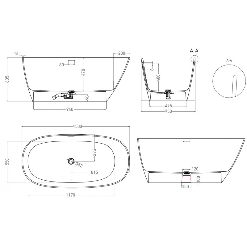 | Расположение ванны: | Отдельностоящая |