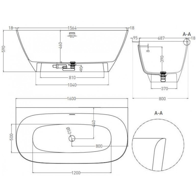 Ванна из литьевого мрамора Salini Sofia Wall 102517G 160х80 белый глянцевый.