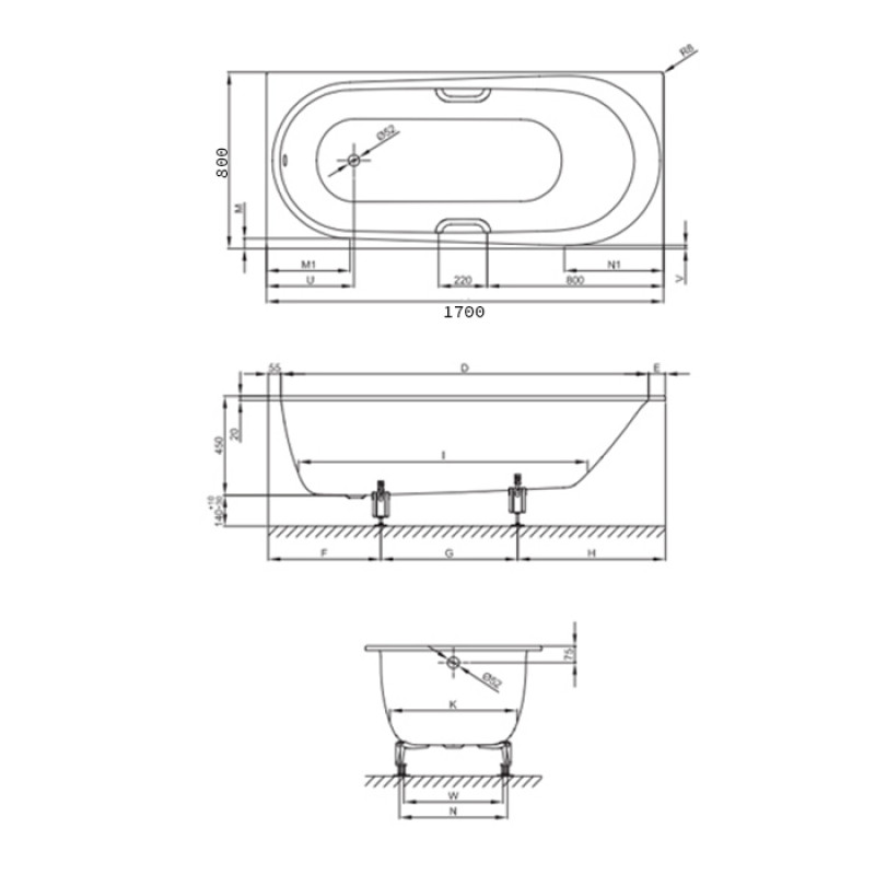 Bette Comodo Ванна 170х80х45см., встраиваемая, с шумоизоляцией, BetteGlasur® Plus, цвет: белый