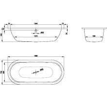 Ванна овальная, как внутри, так и снаружи, с единым симметричным дизайном производит ясное и гармоничное впечатление. Центральное расположение слива позволяет с удобством купаться вдвоем.